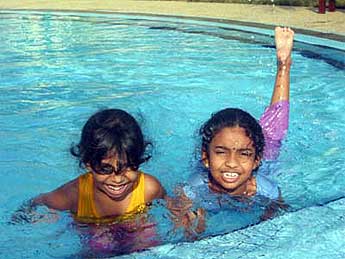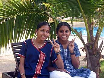 One more session on Lord Siva followed, before the break and all participants were allowed to go to the sea for a plunge. Here we have Meena and Dhanika Nagalingam taking a break near the pool...