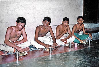 This photo is of older boys eating in the traditional Sri Lankan way.
