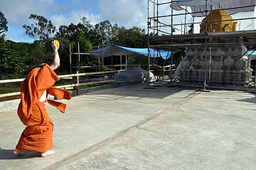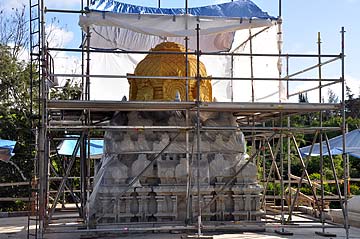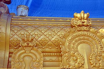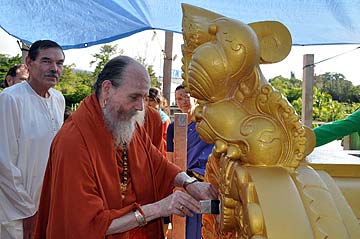 We begin a new phase today and all attention is centered on the gold-leaf work at Iraivan. This morning at exactly 8 am, Bodhinatha applied the first piece of gold leaf to the end of the Rajagopuram.