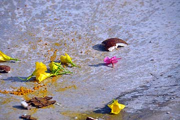 Breaking the coconut.