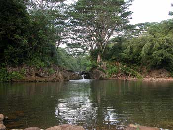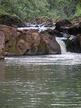 Now free at last from the conventional man-made channels the water tumbles, rushing to join the Wailua.