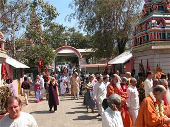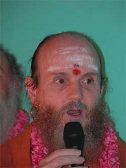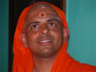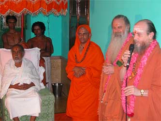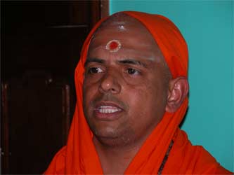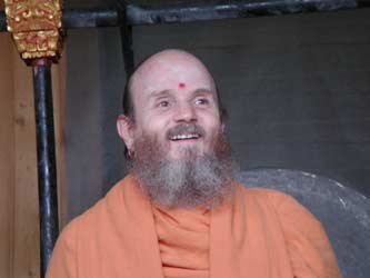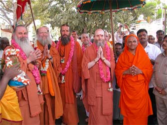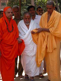 Swami Jeyendrapuri, who is Trichyswamji's designated successor and present acting head of the ashram greets everyone at the gate.