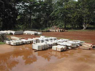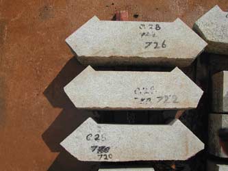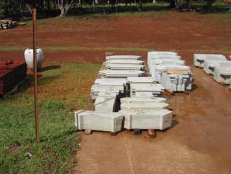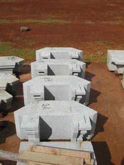In this corner of the temple slab are laid out the remaining stones of the vimana, the tower above the central sanctum. With the next course of stones, the shape changes from square to octagonal.