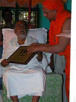 We arrive and the devotees all come forward for darshan of one of India's great saintly sages, now frail, but shining with an aura of holiness.