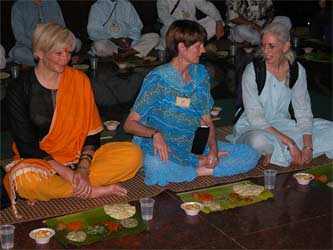 Our pilgrims enjoy their second sit-down-with-banana leaf meal.