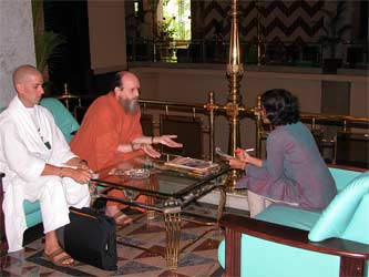 Back at the hotel, Bodhinatha has an interview with local media people.