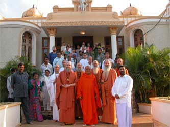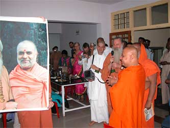 Next, we made a move to visit Sri Balagangadharanathaswamigal at his new ashram on the outskirts of Bangalore. He has been instrumental in supporting the Iraivan Temple project through the years with his donation of land for the temple carving site and all kinds of assistance in various matters. A pure renunciate, he is also at the same time a dynamic leader in Karnataka state.