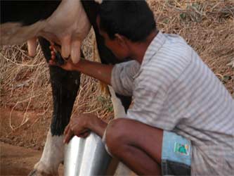 We are taken first to his goshala... cow shed.