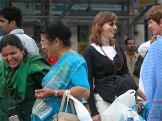 And now, check out time with the Innersearchers returning from the shops all dressed now in beautiful saris, sarwal kameez and elegant kurta shirts for the men.