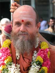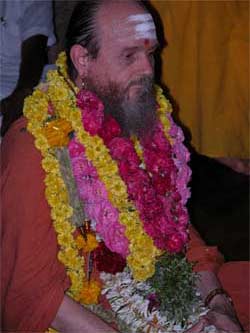 Satguru Bodhinatha Veylanswami at the foot of Palani Hills temple.