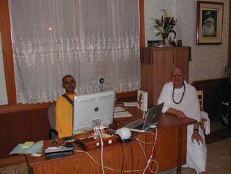 Sivakatirswami attends the classes with a little iBook and writes these captions for TAKA. Later he logs onto the internet from India, emails photos to Kauai and Arumugaswami puts up the daily TAKA page in his absence.