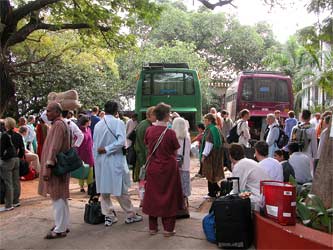 A scene we see every day... Innersearchers gathering to board or disembark from buses... here we have arrived after a long journey from Bangalore.