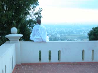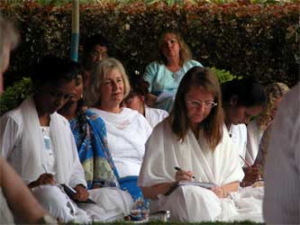 Everyone has been asking when classes would begin. Today after getting settled in our rooms, everyone gathered on the garden terrace for Bodhinatha's first lesson of the Innersearch.