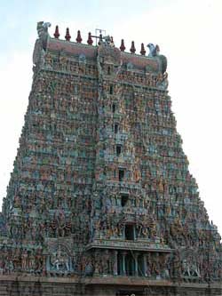 The Raja Gopuram over the east entrance of the temple, which covers an entire city block.