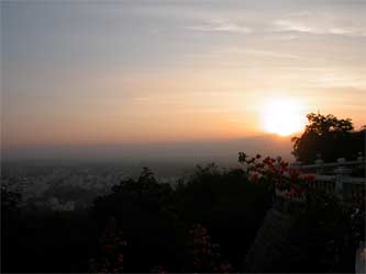 The sun sets in full view of our hotel.... in indescribable experience to be here after darshan of Mother Meenakshi, being in the holy land watching the sun set...