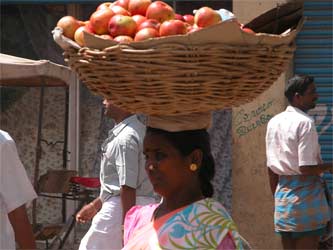Oranges and apples are a common fruit sold everywhere on the streets.