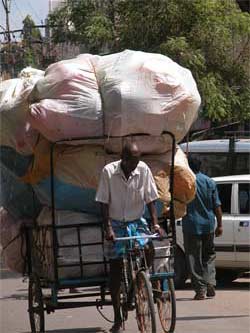 These men on cycle rickshaws handle loads of incredible size... unbelievable how he can drive this mammoth load.