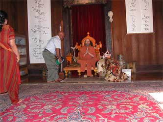 Later during the morning, many Hindu guests came. Here Sanju from Toronto area, Canada, who has been on pilgrimage here for several days, came for darshan with Bodhinatha before going home to Canada.