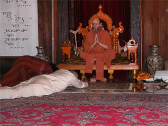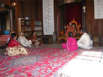 Next our visitors come for darshan and dialog with Satguru Bodhinatha Veylanswami.