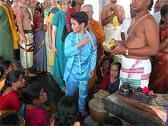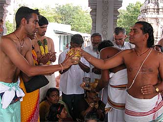 At the other end of the temple compound, Bodhinatha has sponsored a special abhishekam at the shrine of Lord Murugan in his resplendent form at Tiruchendur temple.
