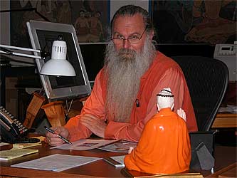 Our managing editor, Sannyasin Arumugaswami working on an article about art work from the Himalayas.