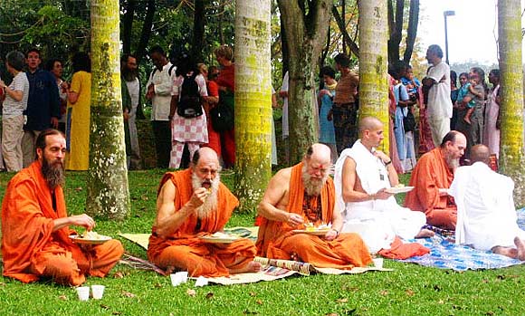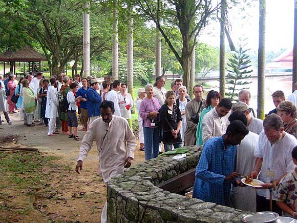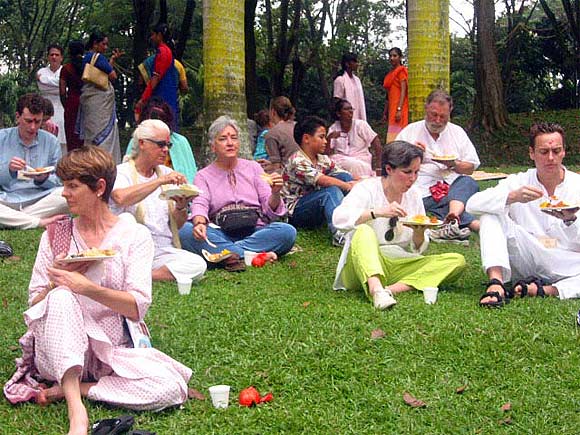 Satguru & Swamis with the Sadhaka's enjoying their lunch