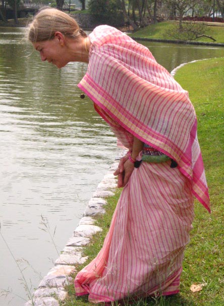 Bhavani Param, saying good bye to the fishes and tortoises in the lake..