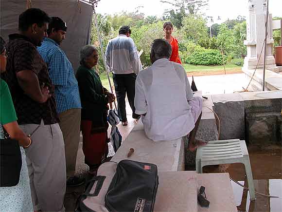 Here is Innersearcher Kulapati Mootoosamy Pareatumbee otherwise known as our dear "Moogam" a long time devotee of Gurudeva from Mauritius. This was Moogam's first trip to India and he says it was his wife, Kulamata Saranamutha, also a student of Gurudeva before they got married, who urged him to take time off from his very successful business life and go to India. He thanks her, saying it was the best time of his whole life.