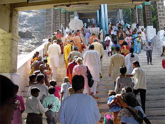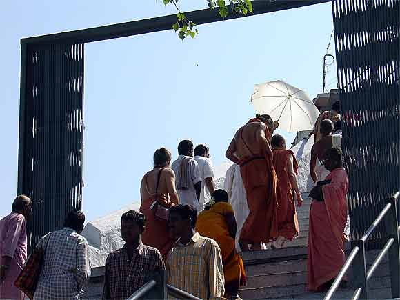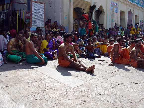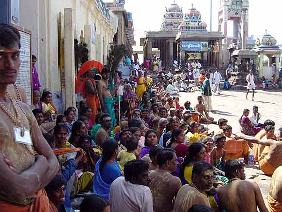 The peaceful fulfillment of those who have been walking on foot, some carrying Kavadi, for days and days in the hot sun, having finally reached their destination....