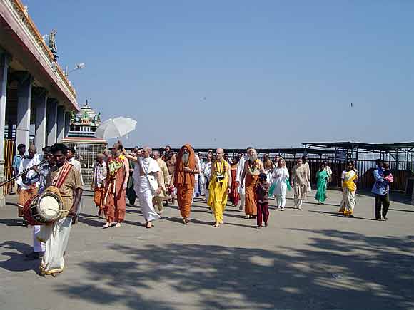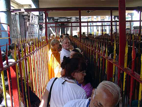 Innersearchers line up in the queue to pass before the Deity for a moment of darshan....