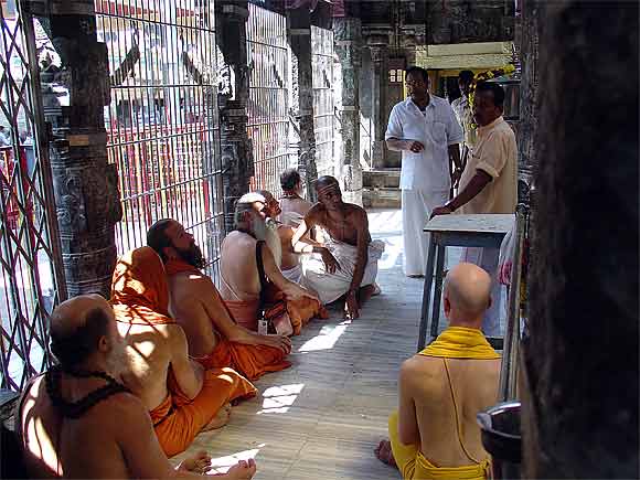 The monks await their turn.... of course, the Deity is rahasya, secret, no pictures are taken, you must come to know...