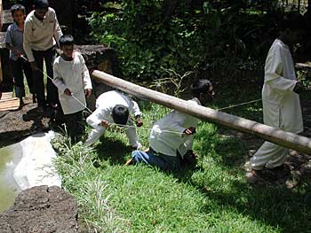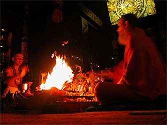 Innersearchers Michael Floyd Duncan and his 10-year old son, Michael Inthawong Duncan, alias "Moose" as he prefers to be called. They are from Thailand. Dad is a long time student of Gurudeva's teachings and married a Thai woman and Moose is one of their children. They were strong participants and Moose was ever an intelligent charming and well-behaved young man, a credit to his father. Moose is a big healthy lad for his age and he did have the hollowest leg we have seen in a long time and usually started with desert first. His father always had a philosophical look on things and a strong bond of love he had created with his son through a patient and supportive attitude that was an inspiration to watch.