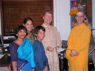 We had quite a group today at the homa. Kulapati and Kulamata Deva and Amala Seyon had the joy of having their entire family together: daughter Kulamata Kavita and son-in-law and Kulapati Sivakumaren with their two daughters, Basanti and Dipanjalai, all the way from Mauritius and their other daughter, and her children from the mainland. Also an Indian family from the mainland as well.