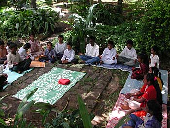 Now everyone sits down to meditate on Lord Siva... The game is over but the concept of the Satguru grasped by the children is everlasting.