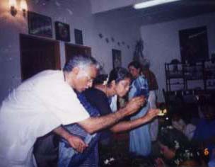 A grand celebration was held to welcome our new arulshishyas, Gunalan and Lalitha Ponniah into SSC family. The monthly homa was held at Kulapathi Murugesu's residence, following the vrata taking ceremony of Gunalan & Lalitha Ponniah. It was Maasi Magam, an auspicious day for Lord Muruga and these couple were very blessed to take their vows on this day.