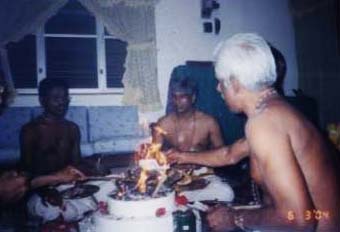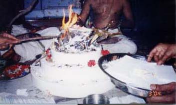 The vibration of the homa was intense and over-whelming. Chanting of mantra after mantra and singing thevarams.