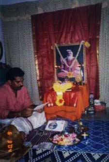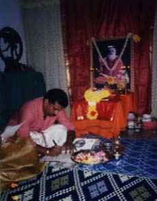 Reading a paragraph from Merging with Shiva to focus our thoughts and invoke the Gods.