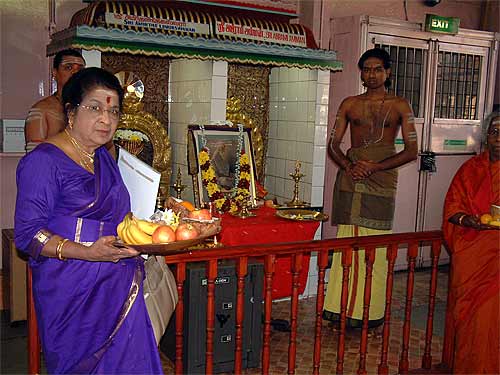 The Gurupoojai celebrations were excellent. The photograph being sent by Email would show Sat Guru Yogaswamigal's portrait adorned by a Chrysanth Garland, in crimson and yellow was made by my humble self. A long Abhishekam to the Sivalingam (Amirthagadeswarar with Abirami Devi beside Him was done well. Sang several Thevarams and compositions of Yoga Swamigal. The Ashdothram was recited eloquently