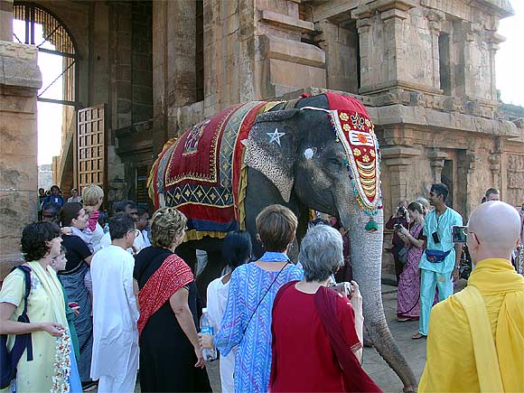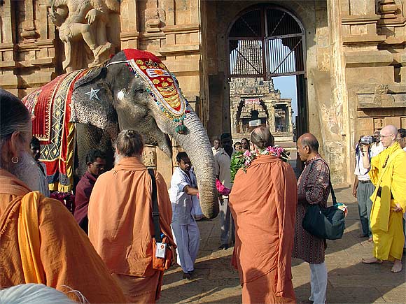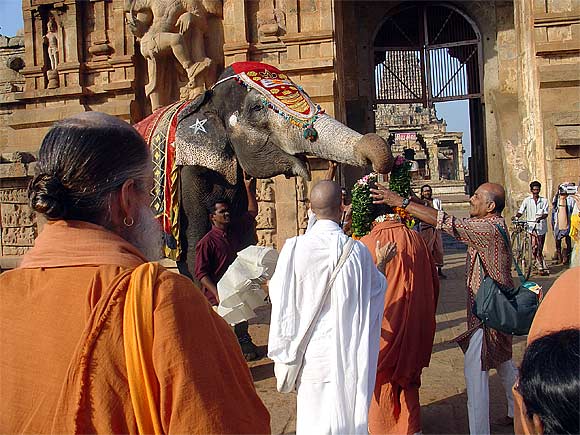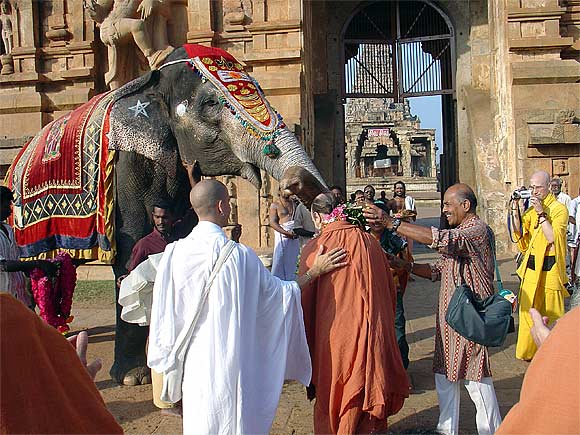 The elephant of Tanjavur's Big temple give Bodhinatha a garland.