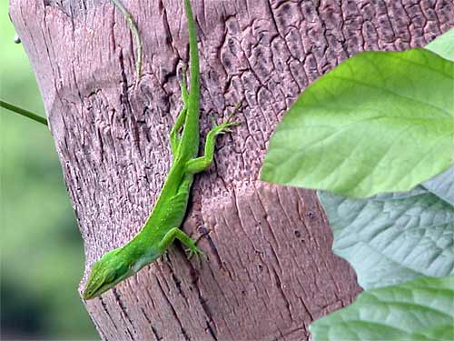 A chameleon looks on. They are so observant and often stop and stare you right in the eye as if there was a little deva inside who wanted to take a good look at you.