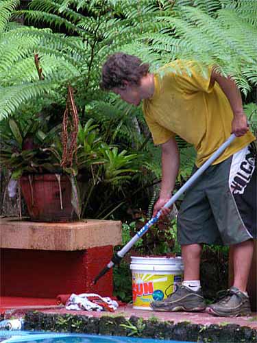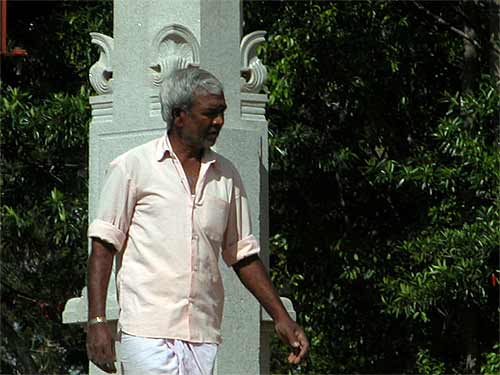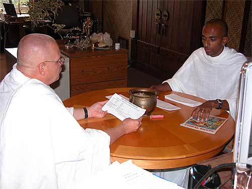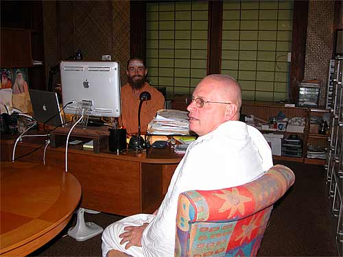 This coming retreat is Iraivan Day, when all the monks work together to push Gurudeva's temple forward one more step. Sadhaka Haranandinatha is checking in with the different kulams and monks, assembling projects he will coordinate on that day. Here he is in the Ekadanta Kulam.