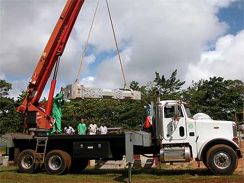 The first pillar on the bed of the truck now being moved out onto the ground...
