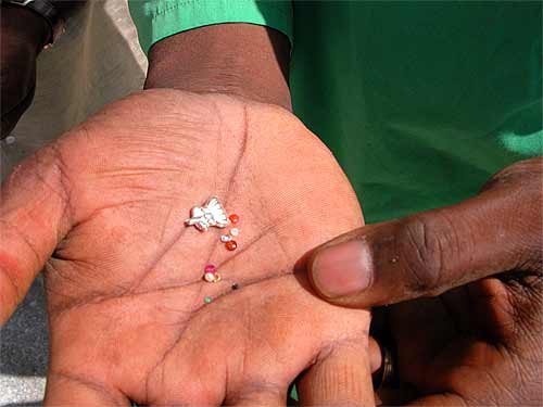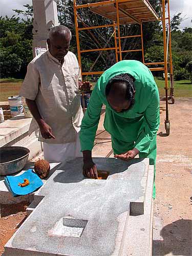 A few gems and a small gold piece are placed under the pillars, as a traditional blessing.
