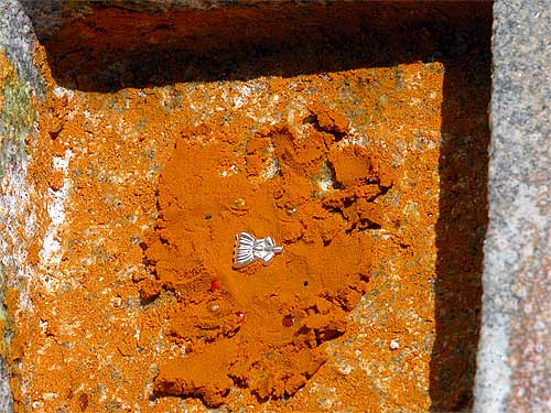 Yoginathaswami places these in a small bed of sandalwood paste at the bottom of the small square notch that will accept the "peg" that protrudes from the bottom of the pillar...