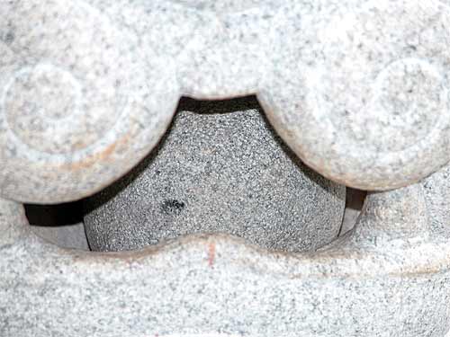 With the pillar set the packing around the stone ball inside the lion's month is removed. It was a bit of a wonderment for the young people on the tour today. "How did they get that stone inside his mouth?"