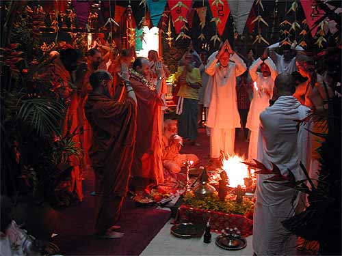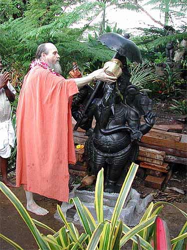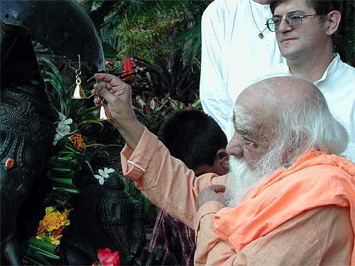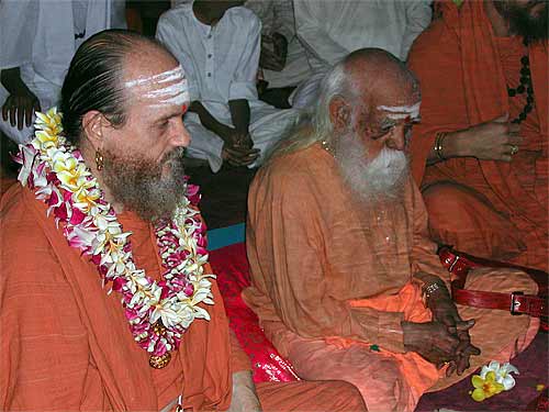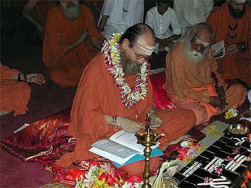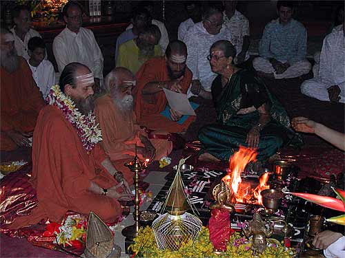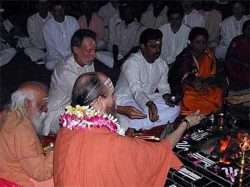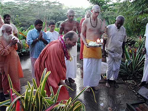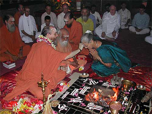 Swami with Bodhinatha at this morning's homa, during which a number of vratas were taken by devotees.