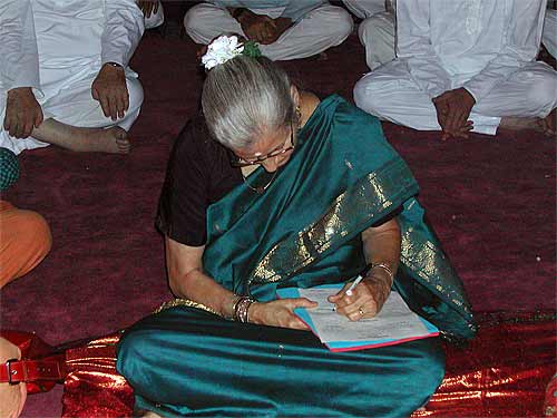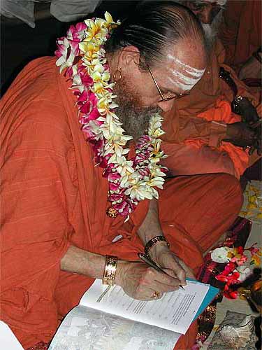 Bodhinatha signs the vrata booklets. He has worked hard to carry Gurudeva's vision forward in this area.
