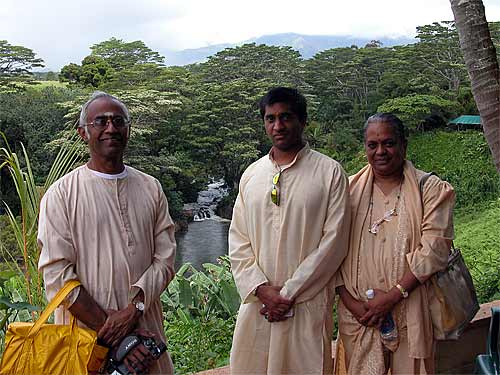 This morning the Padmanabhan family, made up of Gobi, Nirmala and Prashanth, paid us a visit from California Bay Area, happy to discover that we are in the midst of Guru Purnima celebrations. They used to attend our Murugan temple in San Francisco and took Prashanth for his namakarana samskara there soon after he was born. He is now age 21 and happy to connect with us on Kauai for the first time. He really likes this website and spent some time with the swamis learning how this website is built.