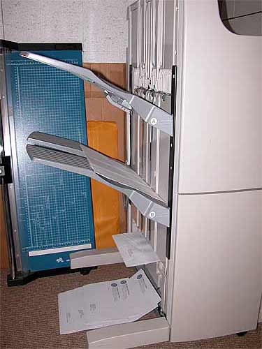 Here they come, printed with your address, folded and stapled all in one operation, almost ready to mail.