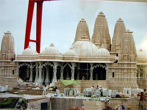 Its a hand carved, marble and limestone temple. That big orange structure is a giant crane.